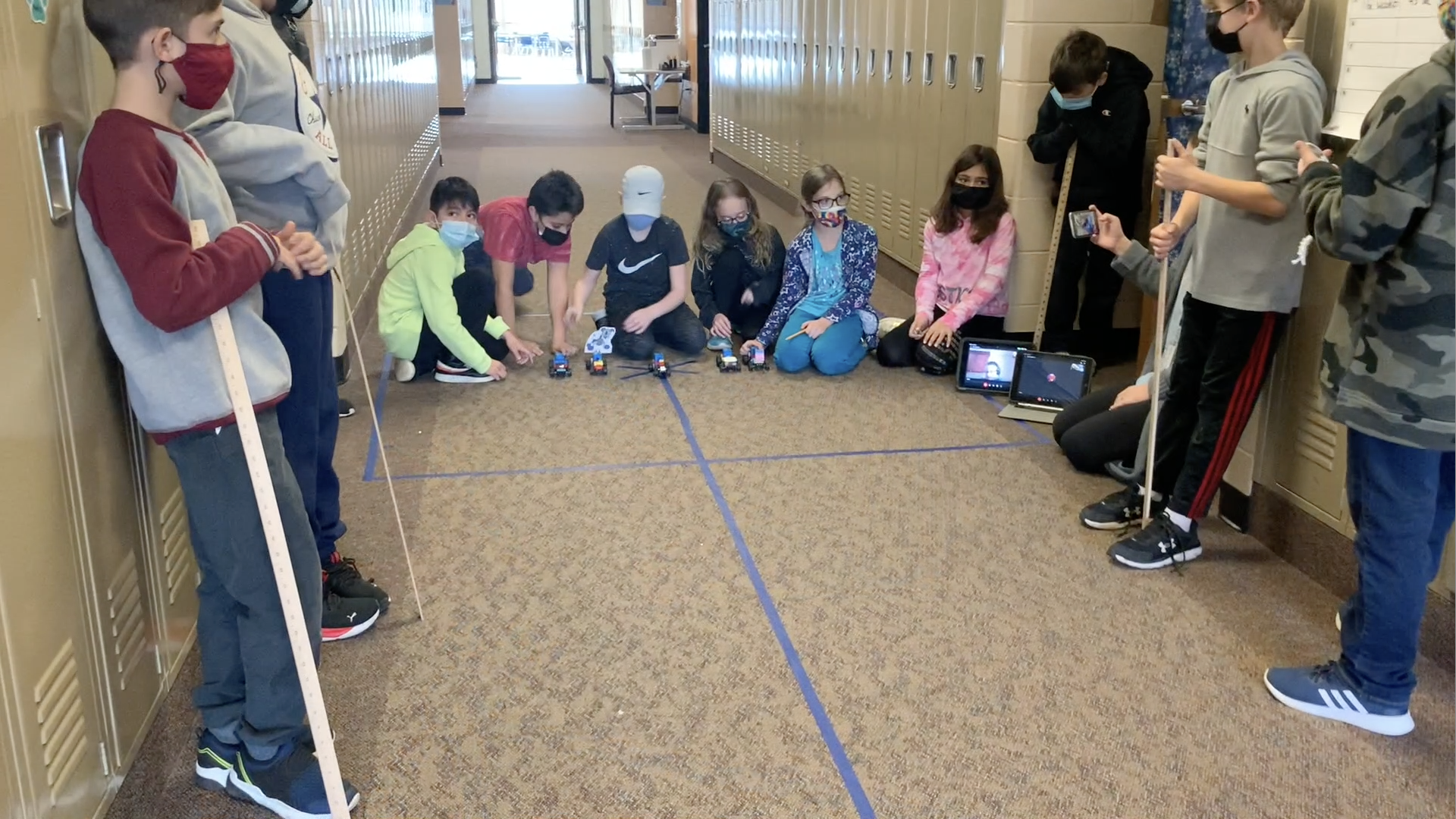 Finding P.I.P.E.R. is a 10-session, 15–20 hour hands-on Math Lab where students work as cadets on an interstellar rescue mission. They build a motorized racer (the Exoplanet Exploration Vehicle, or E.E.V.), collect real distance and time data, and use the coordinate plane and graphing to locate and rescue a stranded robot on a distant planet.